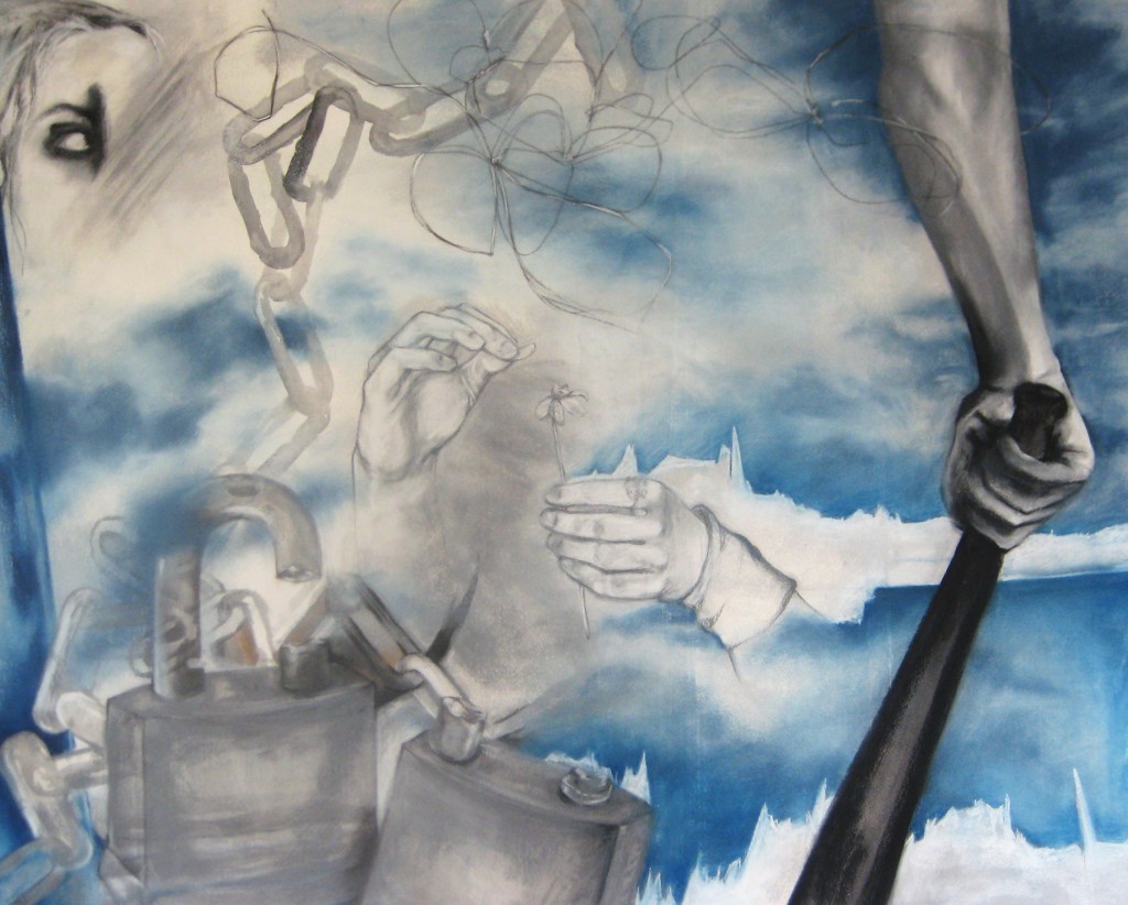 Chalk pastel, ink, and oil stick on rag paper 35”x45”