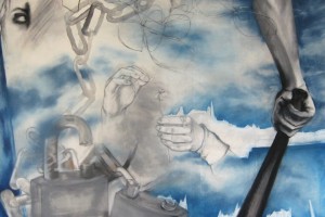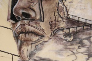 Chalk pastel, ink and oil stick on paper 24”x20”